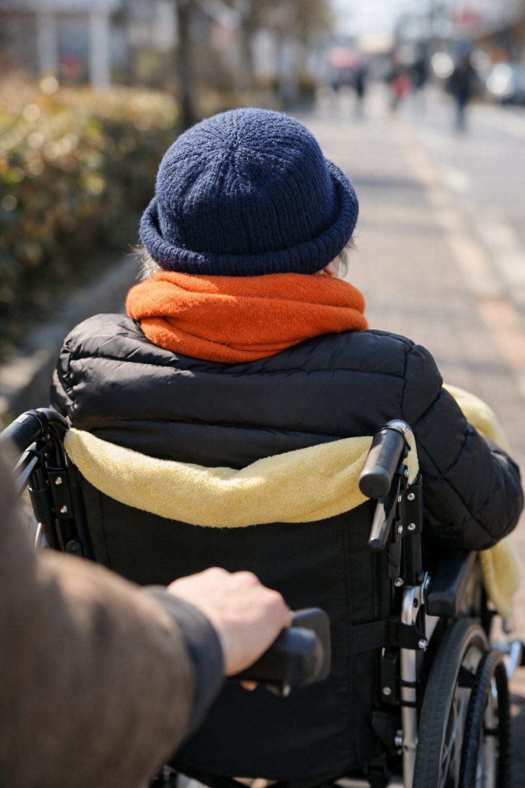 車椅子を押しながら、天気の話をしたり、昔の思い出を聞いたり。